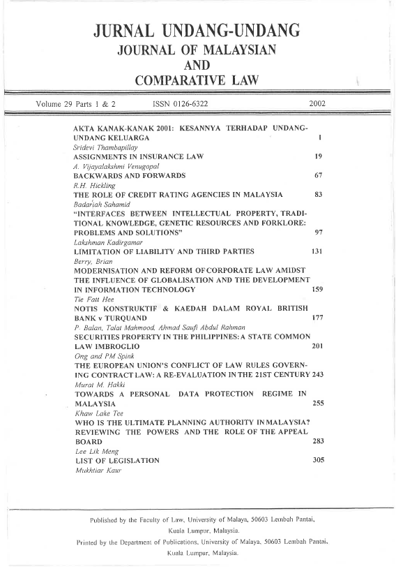 Vol 29 2002 Journal Of Malaysian And Comparative Law Journal Of Malaysian And Comparative Law