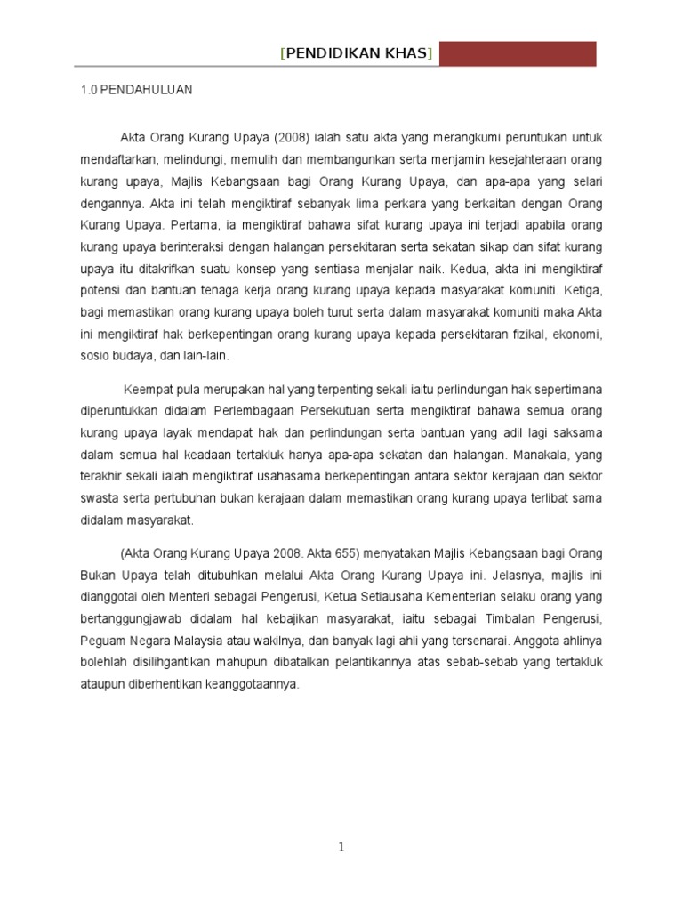 Akta orang kurang upaya. Pada 2008 malaysia menggubal akta orang kurang upaya dan menandatangani konvensyen hak orang kurang upaya pada tahun yang sama. Pdf undang undang malaysia akta orang kurang upaya 2008. Ini dimeterai pada 2010 sebagai langkah untuk meningkatkan. Oleh itu mereka mempunyai kesaksamaan hak dan peluang untuk menjalani kehidupan seperti anggota masyarakat yang lain.