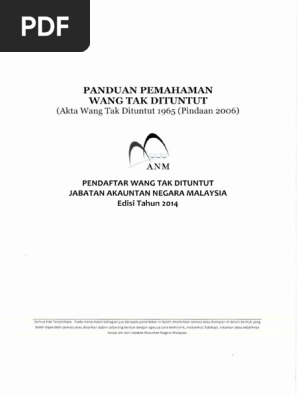 Akta wang tak dituntut 1965. Dengan kewajipan yang digalas bermula dengan perlantikan dari menteri kewangan pada 1 jun 1975 selaku pendaftar wang tak dituntut di malaysia buku panduan ini diharap dapat meningkatkan kesedaran syarikat atau. Pemeriksaan rekod syarikat atau firma di bawah akta wang tak dituntut 1965 baru baru ini pendaftar akta wang tak dituntut telah menjalankan pemeriksaan secara rawak ke atas firma perakaunan yang mengendalikan kewangan syarikat atau firma pelanggan telah mendapat perhatian pihak institut. Borang tuntutan wang tak dituntut uma 7 borang bon tanggungrugi uma 8 contoh surat pengesahan. Unclaimed moneys amendment act 1975.