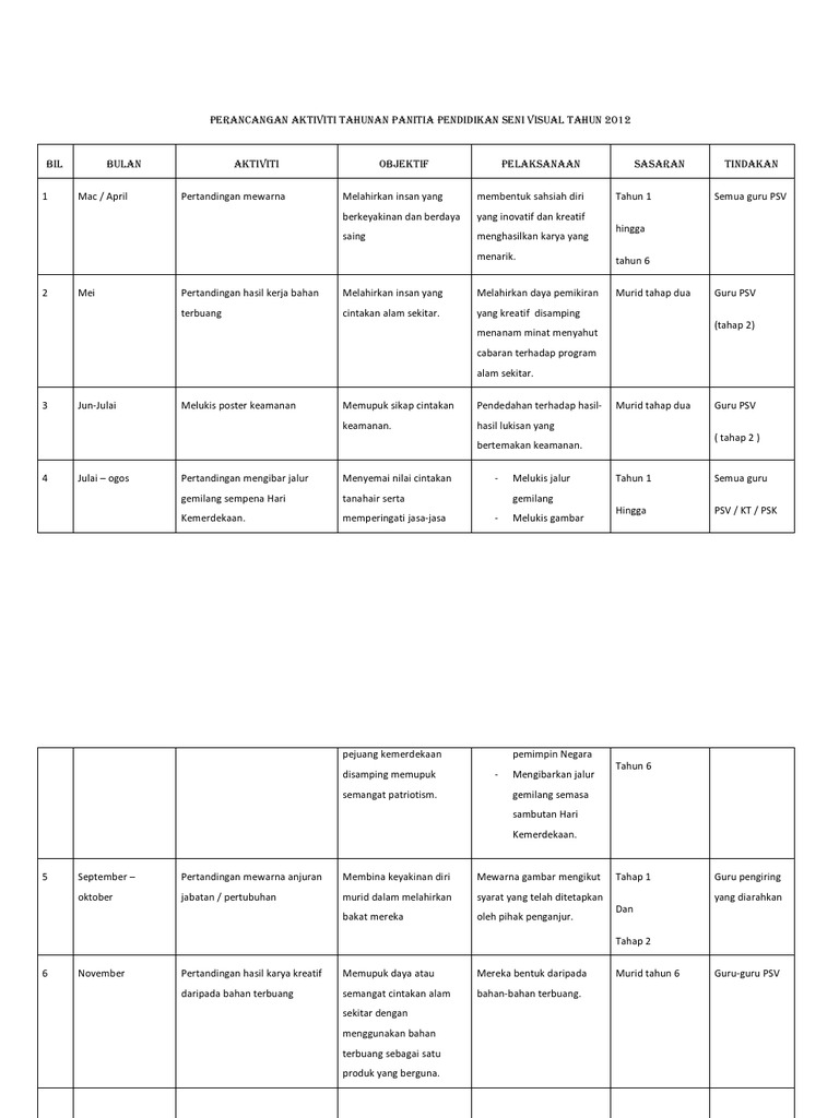 Contoh Perancangan Aktiviti Panitia Pend Seni Visual 2014
