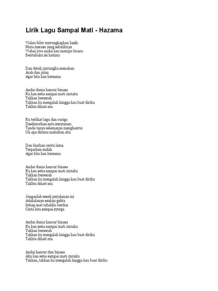 1 l lautan mana yang tidak bergelombang bumi yang mana tidak ditimpa hujan aku sepertimu ada waktu diburu oleh dosa dosa masa yang lalu. Aku hanya insan biasa. Diriku yang tergoda. Ku hulur dan menyusun jari.