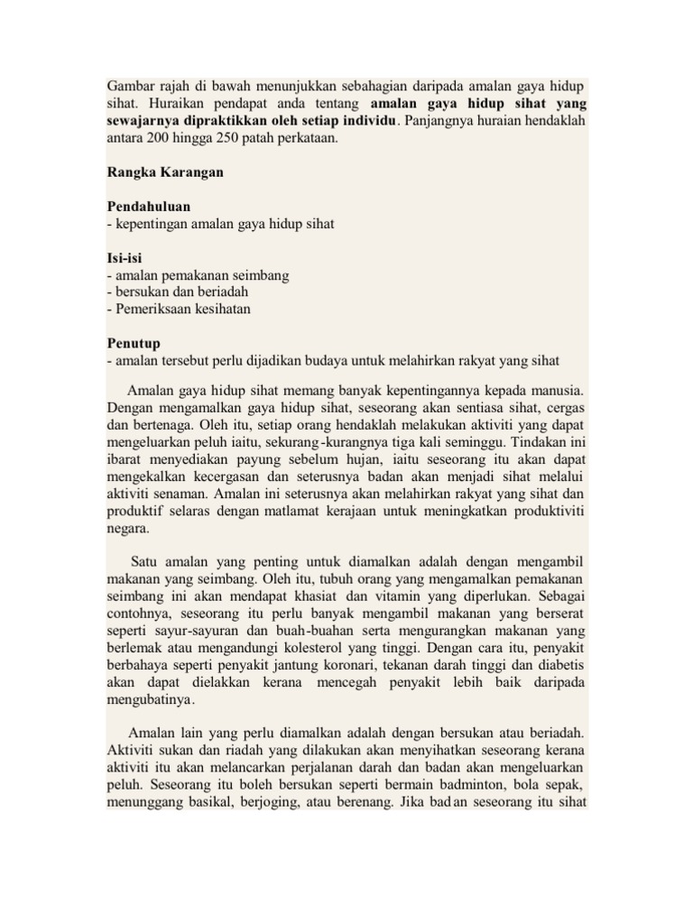 Karangan Gaya Hidup Sihat Pt3 Contoh Terbaik Tajuk