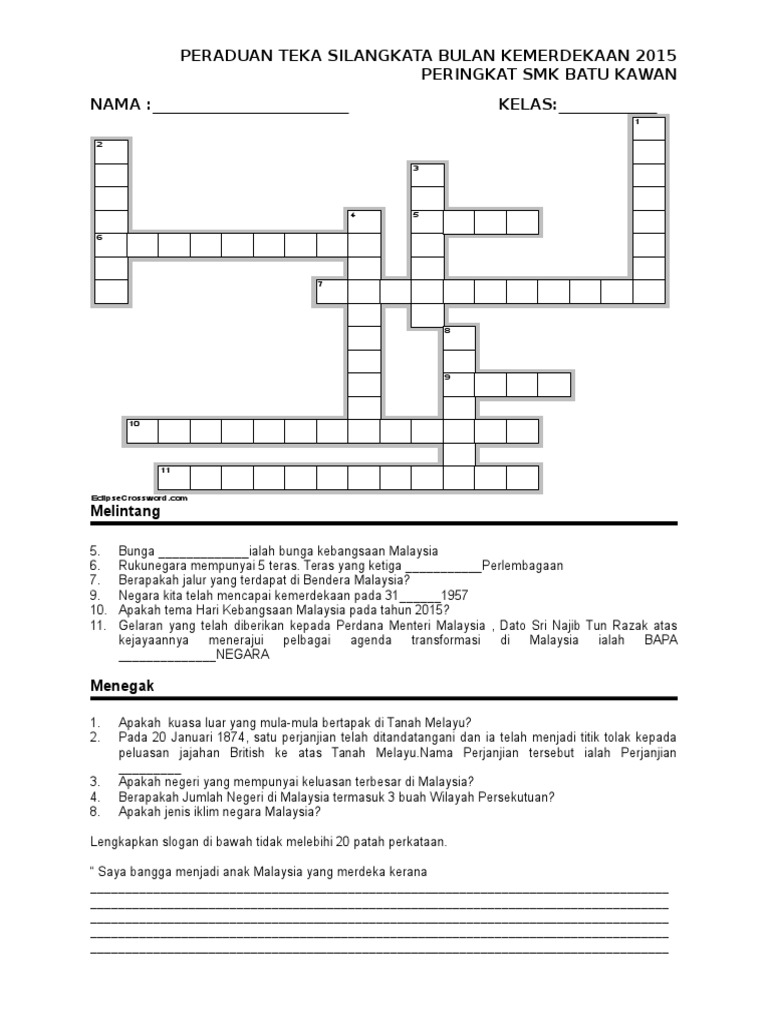 Peraduan Teka Silangkata Bulan Kemerdekaan 2015 Peringkat Smk Batu Kawan Nama Kelas