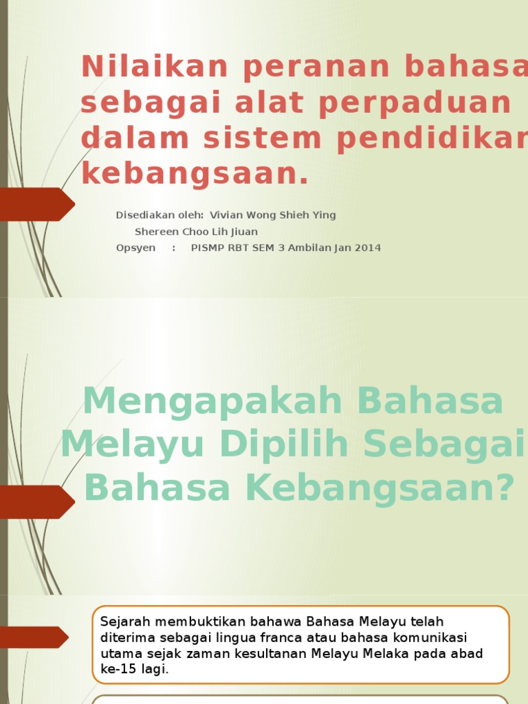 Nilaikan Peranan Bahasa Sebagai Alat Perpaduan Dalam Sistem Pendidikan Kebangsaan
