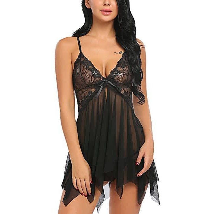 Sexy Lingerie Transparent Lace Chemise Off Shoulder Babydoll Baju Tidur Seksi Wanita See Through Shopee Malaysia