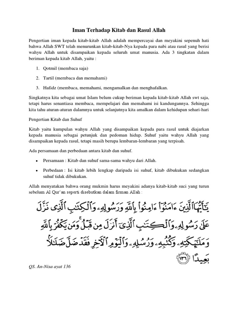 1 nyatakan maksud beriman kepada hari akhirat a salah satu rukun iman jika tidak beriman allah terkeluar daripada islam b yakin kewujudan hari kehancuran seluruh alam semesta dan kebangkitan semula yang kekal abadi. Beriman kepada rasul ting 3.