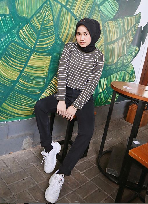 Baju dengan v neck ini memberikan efek lebih kurus.