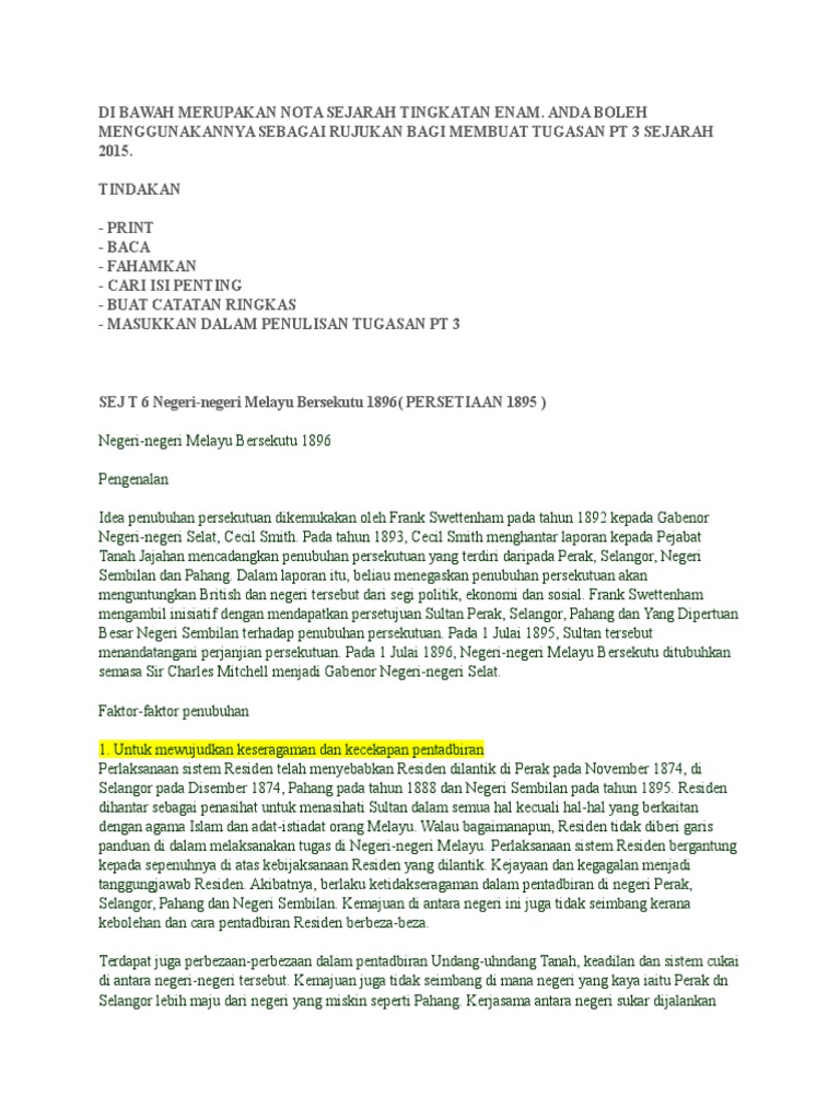 Nnmb 2 Docx Negeri Negeri Melayu Bersekutu 1896 Pengenalan Idea Penubuhan Persekutuan Dikemukakan Oleh Frank Swettenham Pada Tahun 1892 Kepada Gabenor Course Hero