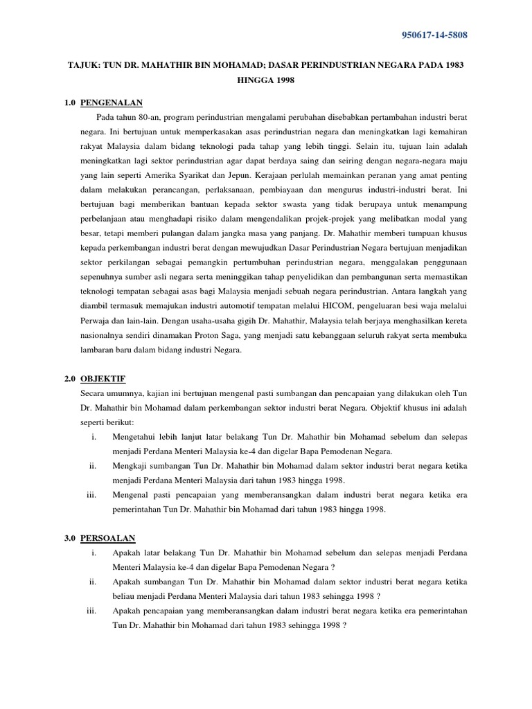 Assignment Sejarah Sjh3163 Peranan Usaha Dan Sumbangan Tun Dr Mahat