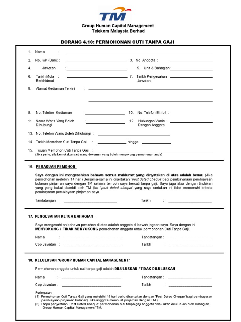 Borang kemas kini februari 2018 ctr bagi pegawai yang dilantik sebagai jurulatih plkn cuti tanpa rekod perayaan vaisakhi cuti menghadiri perbicaraan mahkamah di luar stesen cuti tanpa rekod hari gawai cuti tanpa rekod pesta kaamatan cuti umrah 10. Pegawai telah mengisi borang kebenaran keluar. Cuti tanpa gaji mengikut pasangan 2. Anda cuba buat alasan untuk cuti kerja tanpa gaji atas alasan alasan yang difikirkan logi.