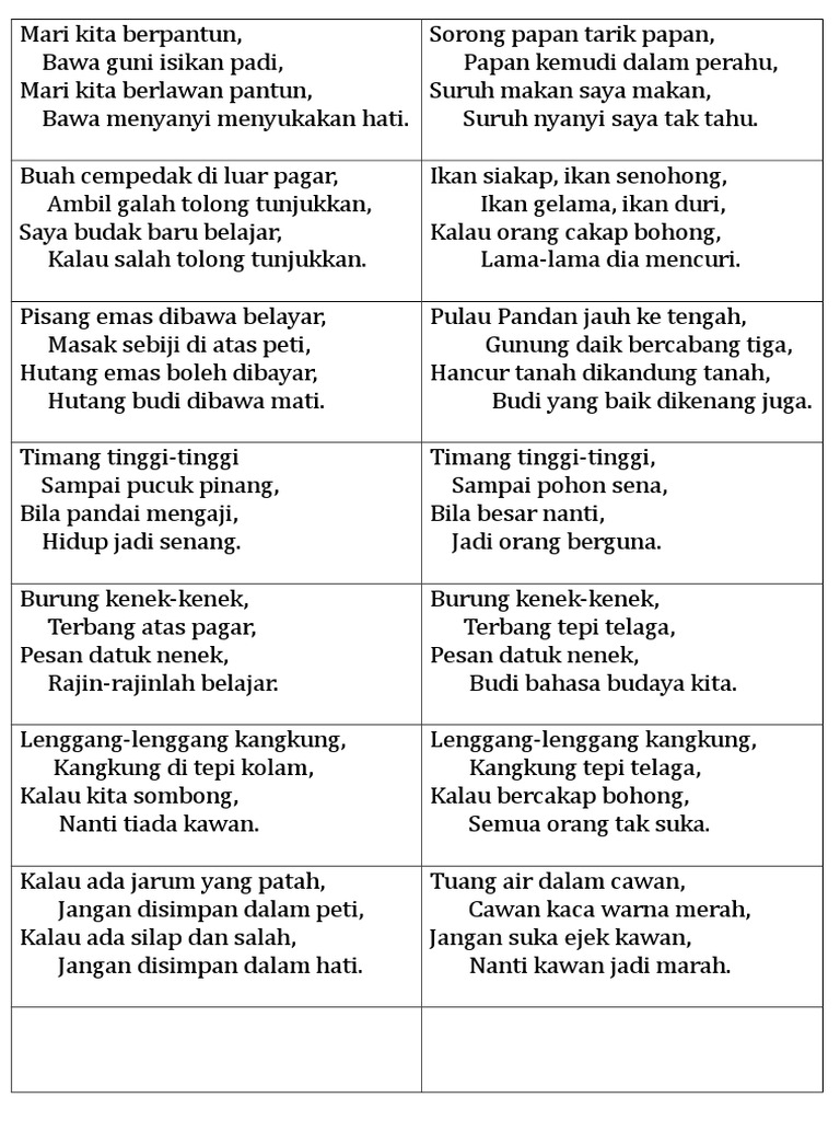Ciri Ciri Pantun Empat Kerat