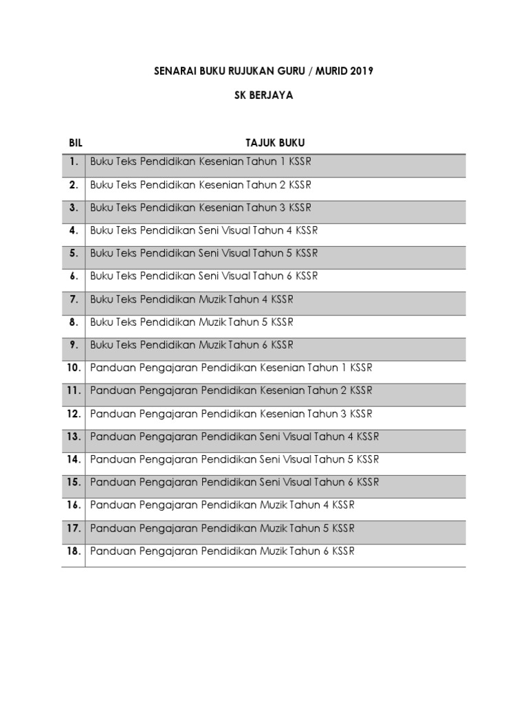Senarai Buku Rujukan Guru 2019