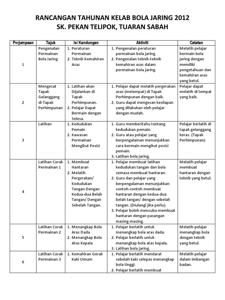 Rancangan Tahunan Bola Jaring 2018