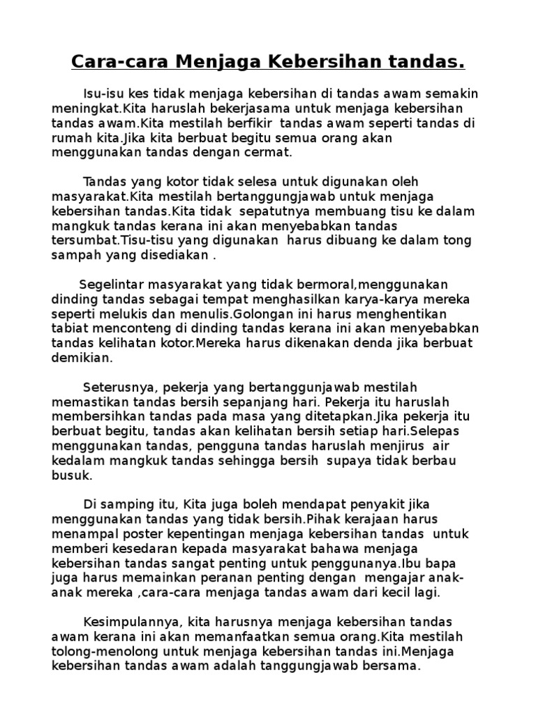 Doc Karangan Bahagian A Cara Cara Menjaga Kebersihan Sekolah Unit Kurikulum Academia Edu