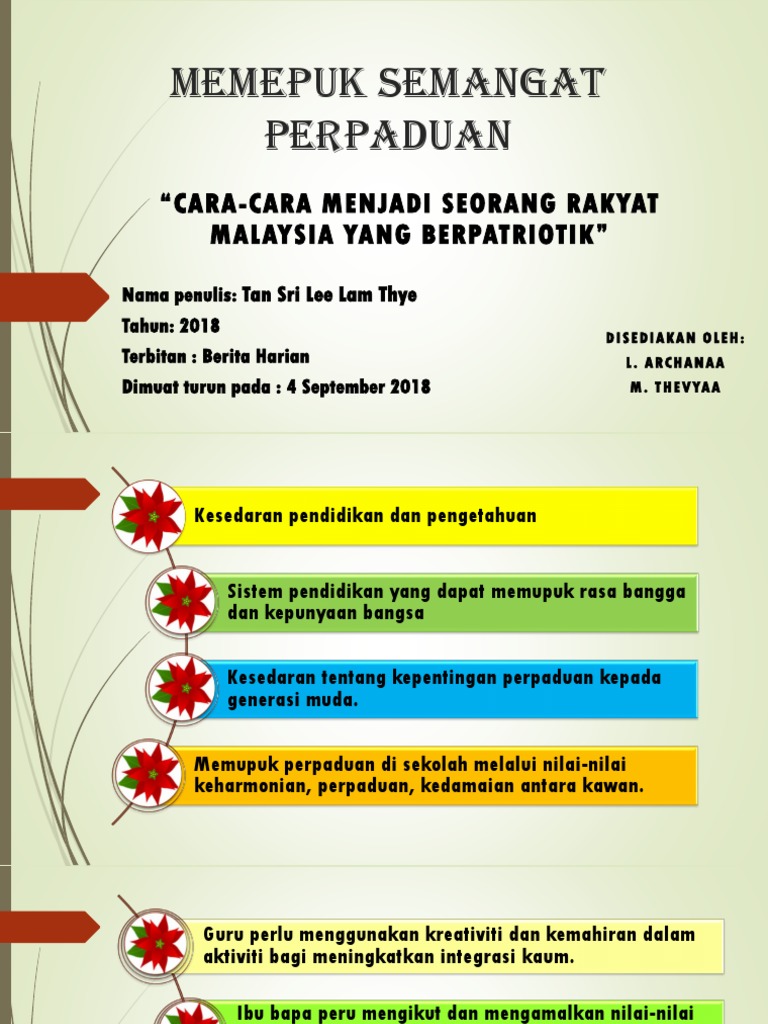 Cara Memupuk Semangat Perpaduan Di Sekolah