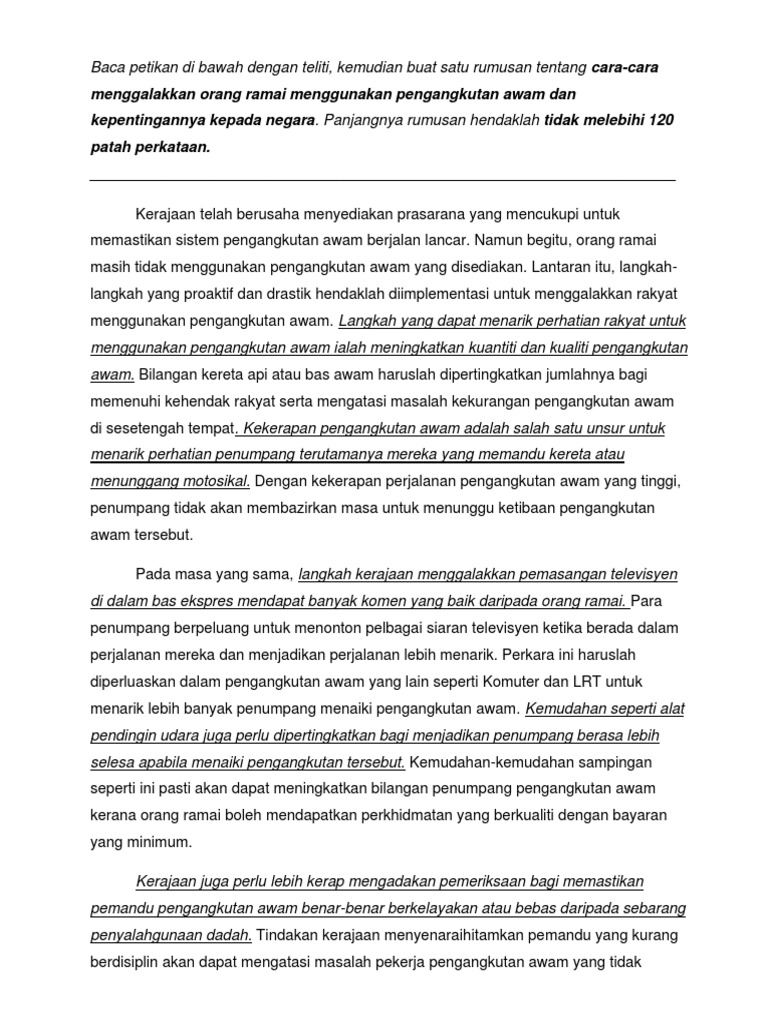 Oleh itu wajar untuk kita bincangkan apakah langkah langkah yang perlu dilaksanakan bagi mengatasi kesesakan jalan raya. Sistem pengangkutan awam di malaysia telah berkembang maju dari tahun ke tahun sesuai dengan peredaran masa namun masalah pengangkutan awam masih gagal diatasi. Cadangan penambahbaikan pengangkutan awam terbaik di malaysia cara mengatasi masalah langkah langkah penambahbaikan sistem penangkutan awam bagi memberi keselesaan kepada pengguna sistem pengangkutan awam di malaysia penambahbaikan dalam sistem ini perlu dijalankan segera. 13514 hits masalah pengangkutan awam dan cara mengatasi sila klik masalah pengangkutan awam dan cara mengatasi untuk rujukan pt3 tingkatan 1 2 3 sila klik rujukan pt3 soalan peperiksaan percubaan nota jawapan latihan bahan bahan rujukan tingkatan 3 ko.