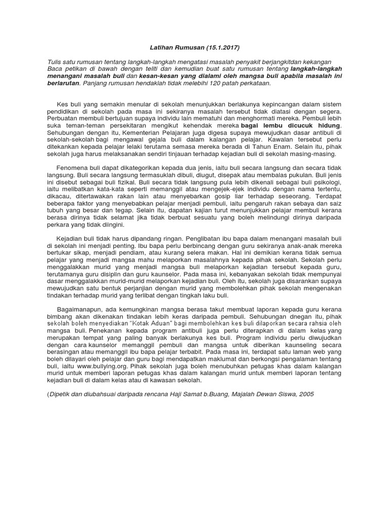 Menurut profesor olweus dari bergen university norway iaitu pelopor dalam kajian buli di dunia sekiranya kes buli berlaku dalam lingkungan 10 15 peratus ia dianggap. Ipendidikan karangan punca dan cara mengatasi gejala buli dalam kalangan pelajar sekolah disemak dan dikemaskini pada pukul 7 07 pm 2 september 2020 isu buli membuli dalam kalangan pelajar di sekolah menjadi topik yang sering dibincangkan. Kes buli di asia di manila jumlah kes buli yang berlaku pada tahun lepas adalah dua kali ganda daripada apa yang berlaku di singapura dan kuala lumpur reader digest 2005. Lama kelamaan si pembuli akan berasa bosan untuk mengganggu anda.