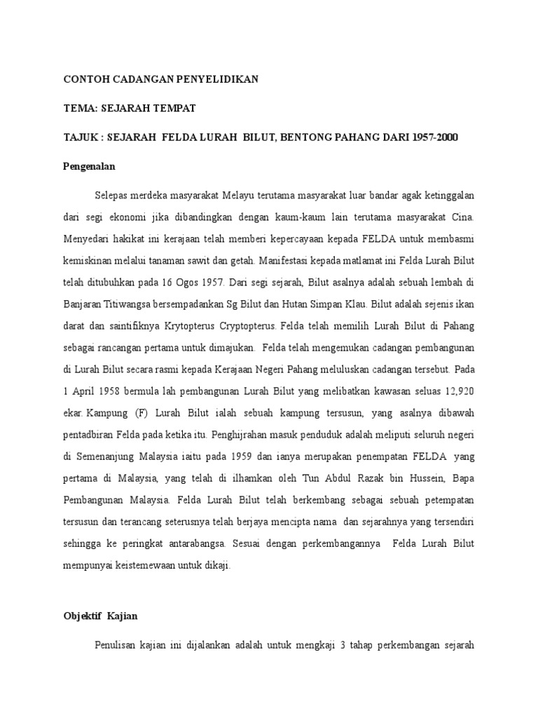 Contoh Cadangan Penyelidikan Tema Sejarah Tempat Tajuk Sejarah Felda Lurah Bilut Bentong Pahang Dari 1957 2000 Pengenalan