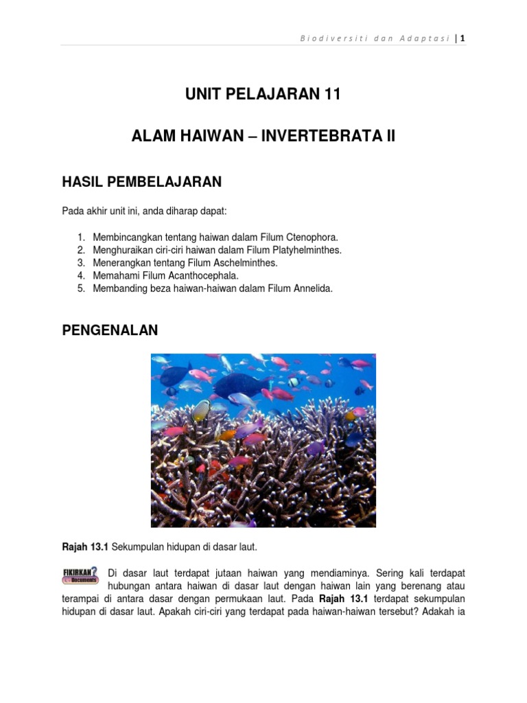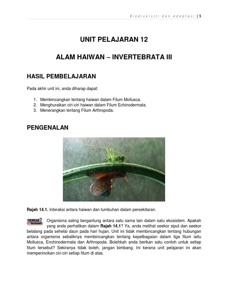 Unit Pelajaran 11 Alam Haiwan Invertebrata Ii 1