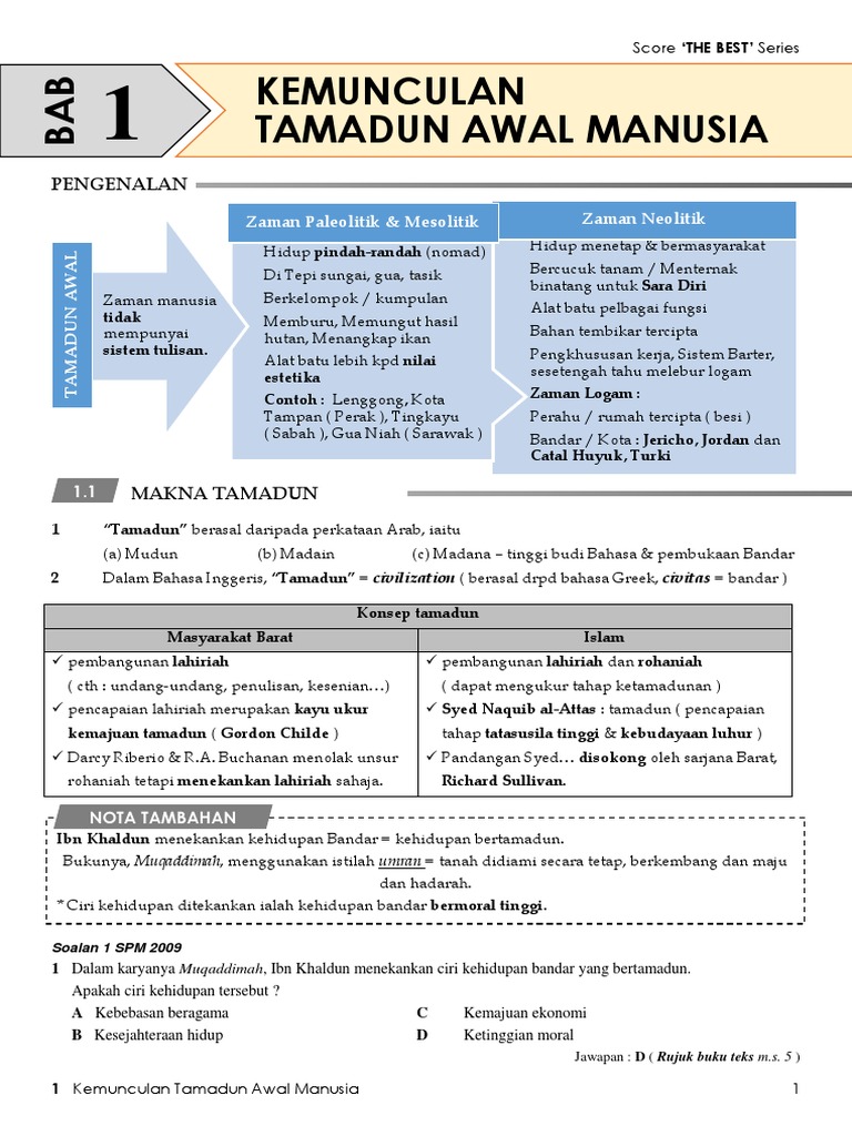 Pdf Sejarah Tingkatan 4 B A B 1 T A M A D U N A W A L M A N U S I A Imran Nor Academia Edu