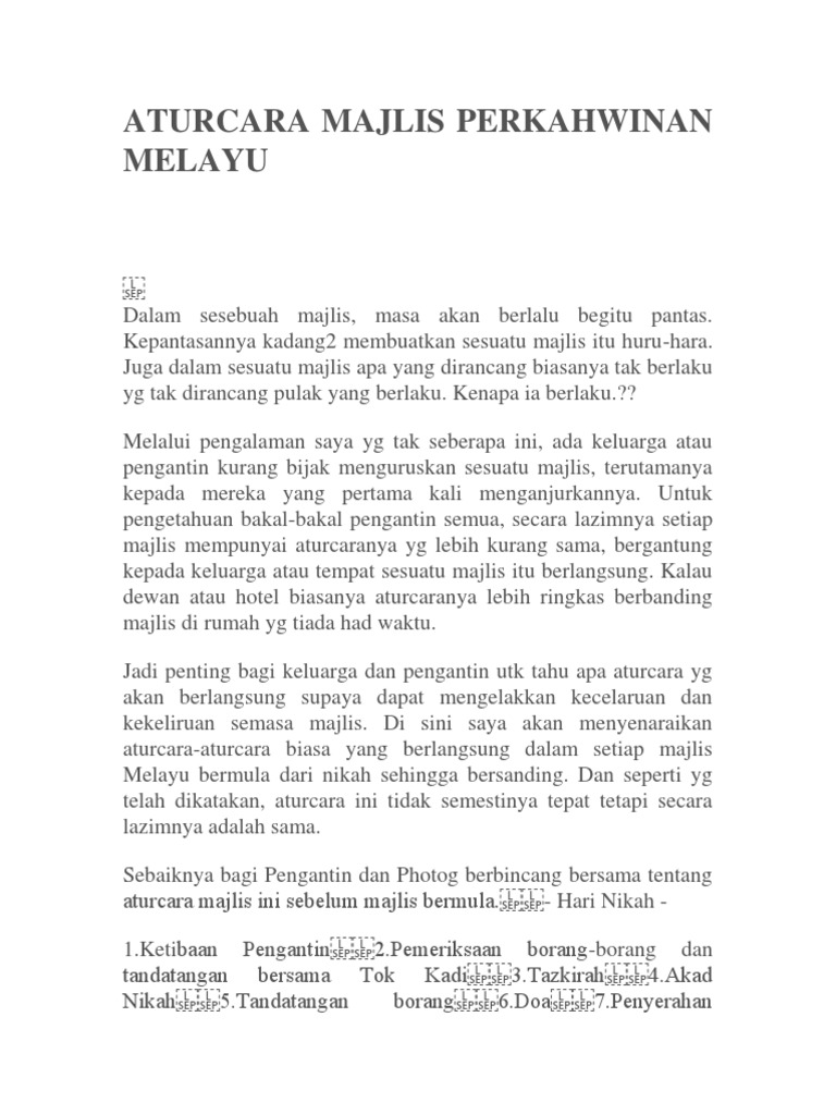 Aturcara Majlis Perkahwinan Melayu Docx