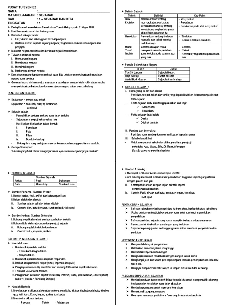 Nota Sejarah Tuisyen Tingkatan 1 Bab 1