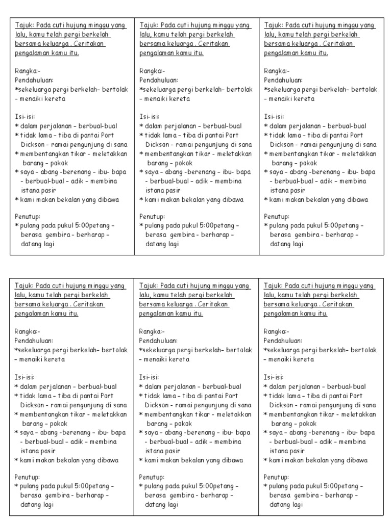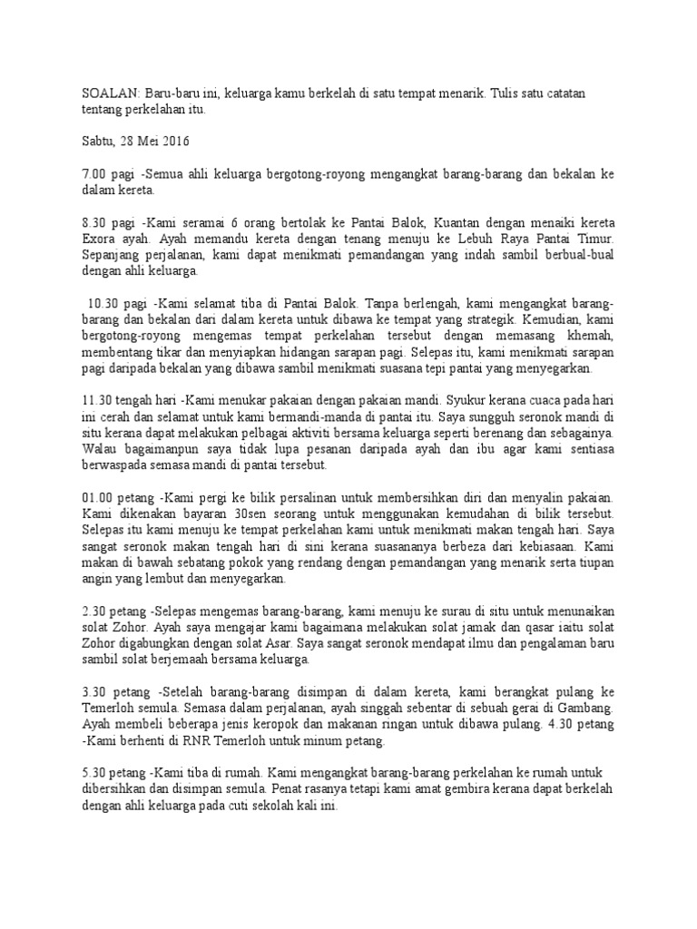Karangan Bahasa Melayu Karangan Pergi Berkelah Bersama Keluarga Di Pantai